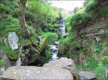 The Bronte Waterfalls consist of a series of small stepped falls over layers of grit stone on South Dean Beck. The falls were described by Charlotte Brontė as "fine indeed; a perfect torrent racing over the rocks, white and beautiful".
