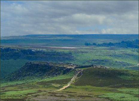 Carl Wark, a rocky promontory on heather moorland near Hathersage, is situated just within the Yorkshire side of the border with Derbyshire, near to Higgar Tor and lies between Stanage and Burbage Edges and just inside the boundary of the city of Sheffield, which lies about 3 miles to the north east.