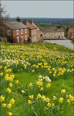 The village is designated as a conservation area, especially the churchyard, which has 24 varieties of wild flowers, some of which are very rare species. The vilalge green is particularly attractive in the spring when it is awash with daffodils. Stone cottages are positioned irregularly along either side of the main street, which forks some distance below the church. Half a mile below the village, on the Brandsby road, stands Wyndham Hall, now known as Crayke Manor (pictured above right). To celebrate the Millennium, a trail has been laid around the village, with mosaic markers, which portray different aspects of the surrounding countryside.