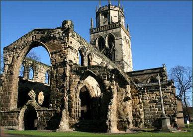 All Saint's Church, ( left) stands below the castle and was built around the 1300s, but only a few parts of that building have survived to the present day. In 1536 an uprising occured in the North known as the Pilgrimage of Grace, in opposition to Henry VIII's unpopular religious reforms. Many of the rebels travelled to Pontefract to establish themselves in the castle. The Archbishop of York was preaching in the church at Pontefract and preached moderation, his congregation dragged him from the pulpit and off to the castle.