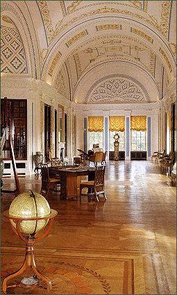 Sledmere House contains Chippendale, Sheraton and French furnishings and many fine pictures. An imperial staircase leads to the Long Library, reputed to be one of the most beautiful rooms in England, it contains an extensive collection of rare books. The Drawing Room and Music Room were decorated by Joseph Rose. The Music Room contains an organ case designed by Samuel Green for the original house in 1751.