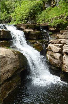 Kidson Force (pictured left) is a picturesque series of waterfalls on the River Swale near Thwaite, (OS grid reference NY 898 010).